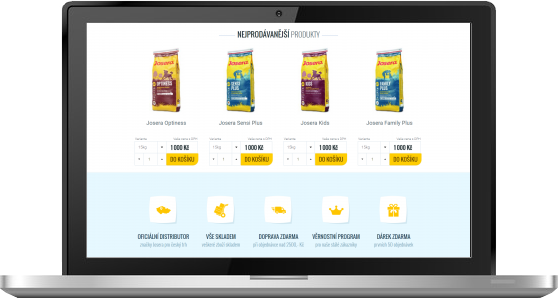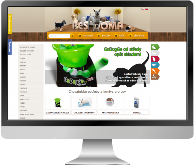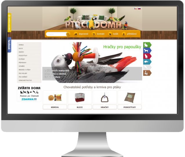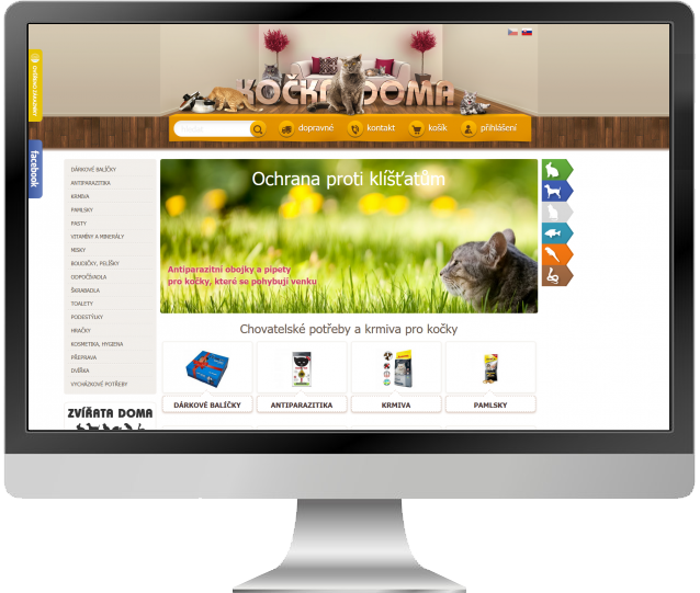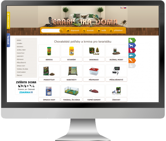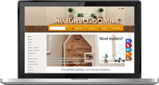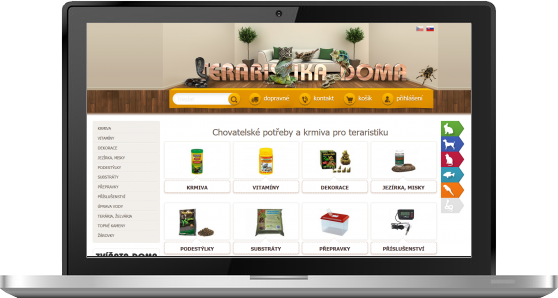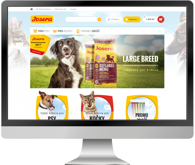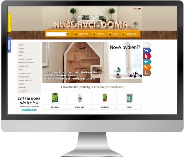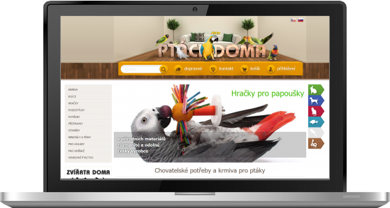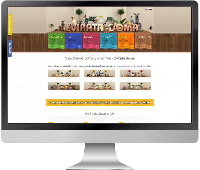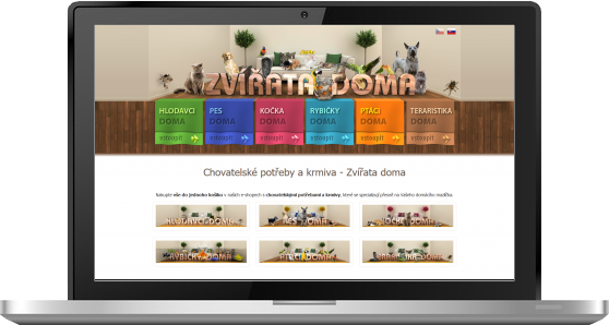 Internetový obchod pro Českou republiku a Slovensko rozdělený do 6 divizí s nabídkou chovatelských potřeb a krmiv
