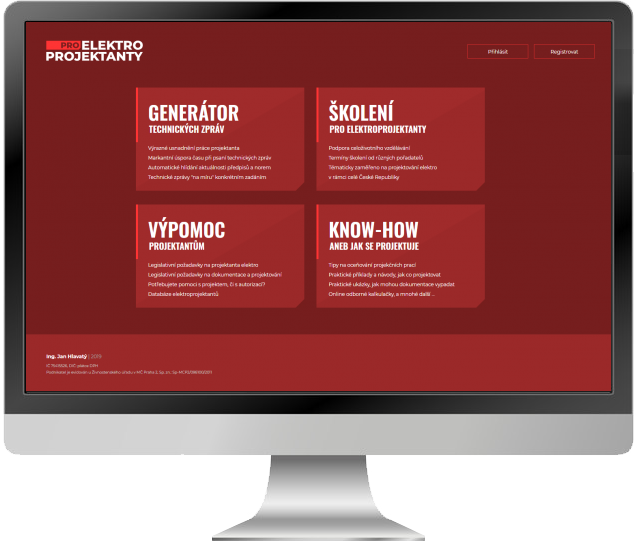 portál pro elektroprojektanty, generování technických zpráv z vybraných údajů ve formuláři, školení, výpomoc, know-how